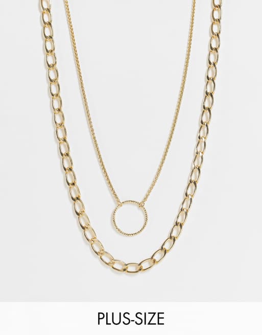 DesignB London Curve – Goldfarbene Halsketten mit Ringanhänger im 2er-Pack