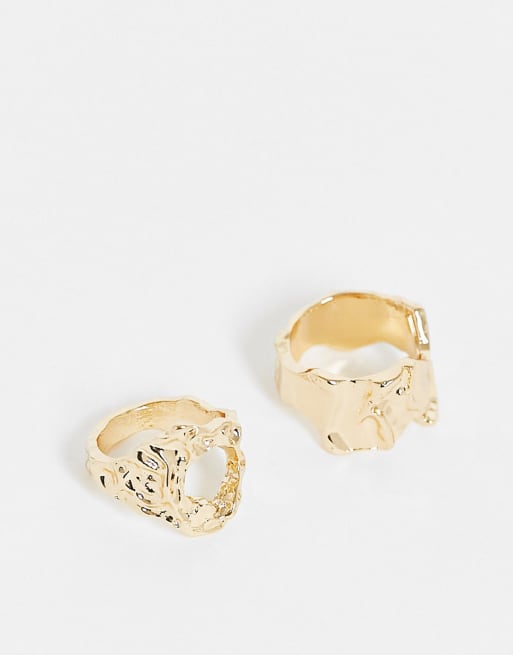 DesignB London – 2er-Pack goldfarbene Ringe im Schmelzdesign
