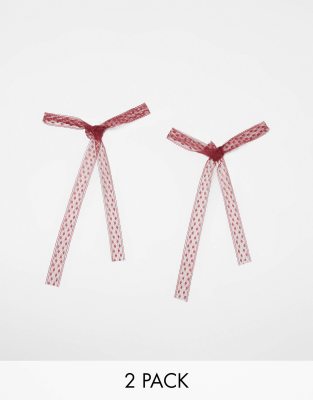 DesignB London – 2er-Pack Haarschleifen in Burgunderrot mit Lochstickerei