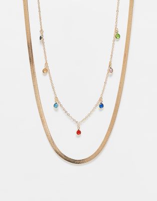 DesignB London – 2er-Pack Halsketten in Goldoptik mit flacher und mehrfarbiger Perlenanhänger-Optik