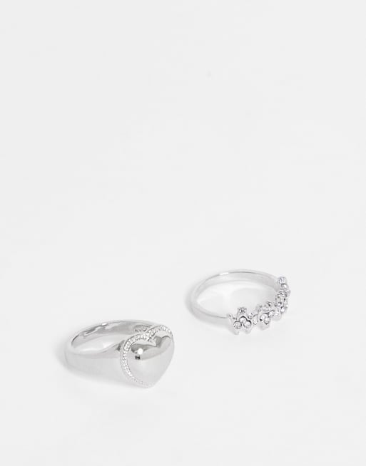 DesignB London – 2er-Pack silberfarbene Ringe mit Herz- und Flammendesign