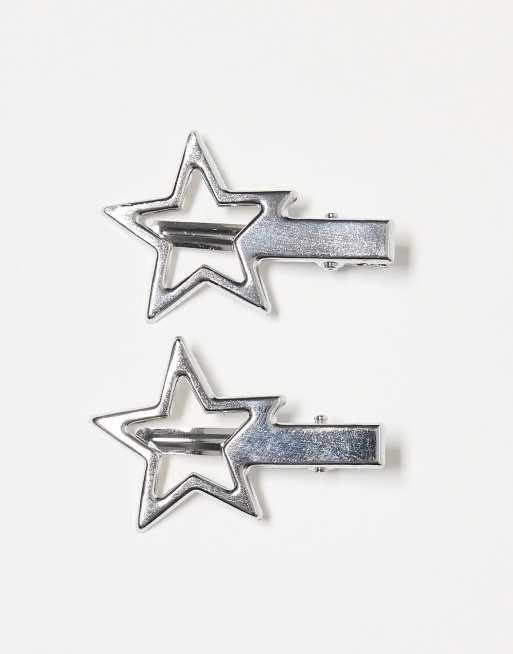 DesignB London – 2er-Pack Stern-Haarspangen in Silberoptik