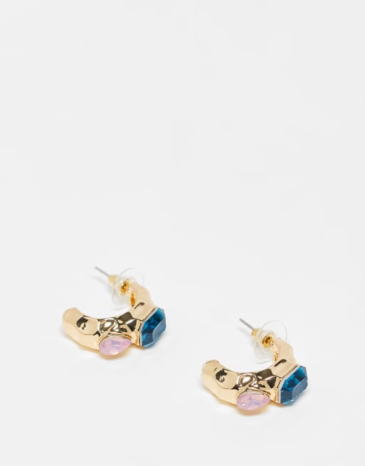 DesignB London – Goldfarbene Creolen in Schmelzmetall-Design mit Schmucksteinen aus Glas