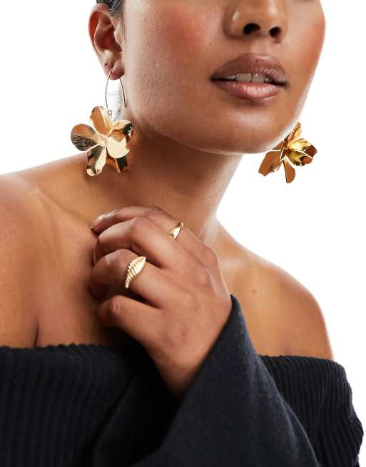 DesignB London – Goldfarbene Statement-Ohrringe in Blütenform