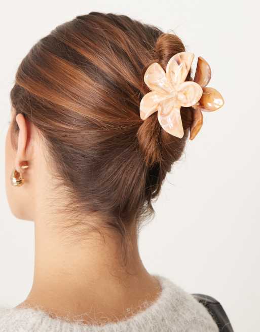 DesignB London – Haarklammer mit Hawaii-Blumendesign in Sandfarbton