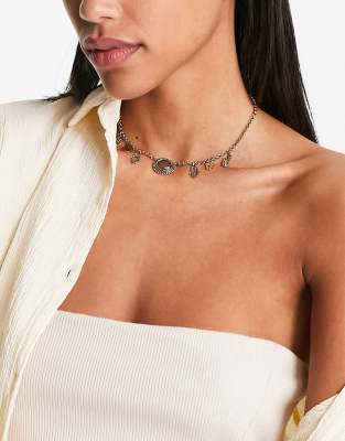 DesignB London – Halskette in Gold-Optik mit mehreren Anhängern und Halbedelstein
