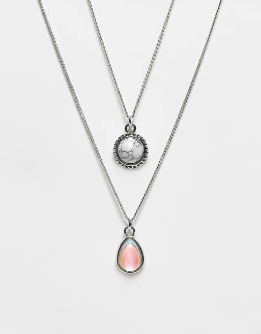 DesignB London – Mehrreihige Halskette mit Anhänger samt Halbedelstein
