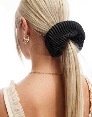 DesignB London – Plissierter Scrunchie-Haargummi in Schwarz