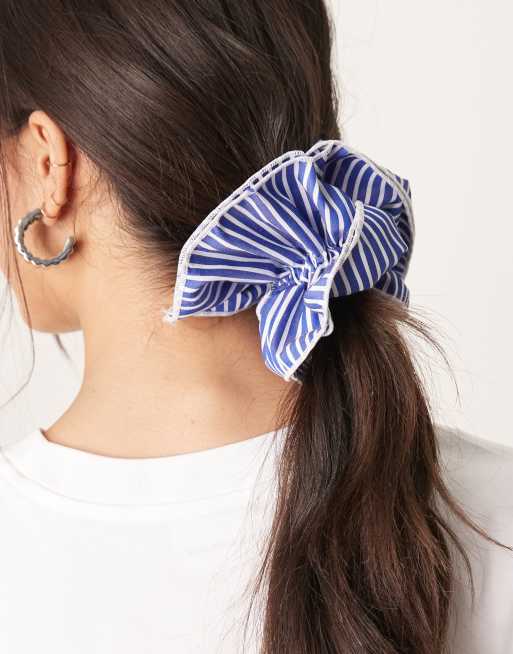 DesignB London – Scrunchie in Marineblau und Weiß gestreift