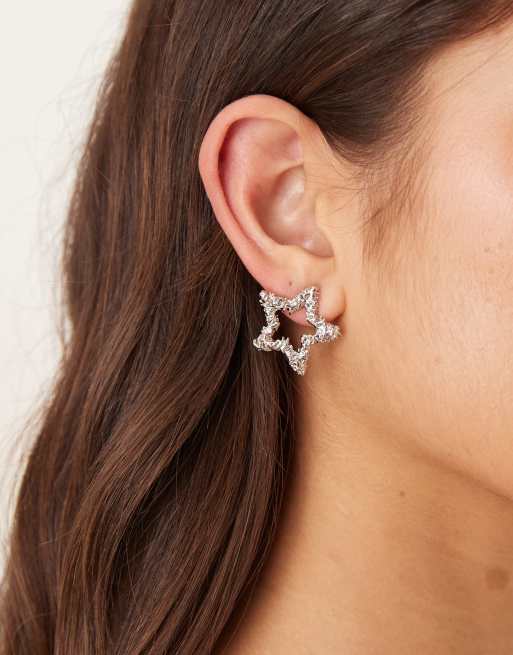 DesignB London – Silberfarbene Ohrstecker im geschmolzenen Stern-Design