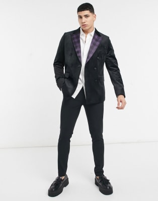 Devil's Advocate – Eng geschnittener Samtanzug mit Kontrastkragen