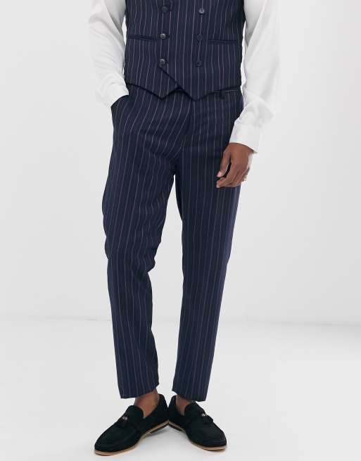 Devils Advocate – Enge Anzughose in Marine gestreift