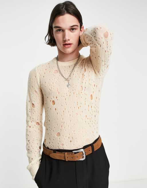 Devil's Advocate – Pullover mit Rundhalsausschnitt und gewebtem Lochmuster