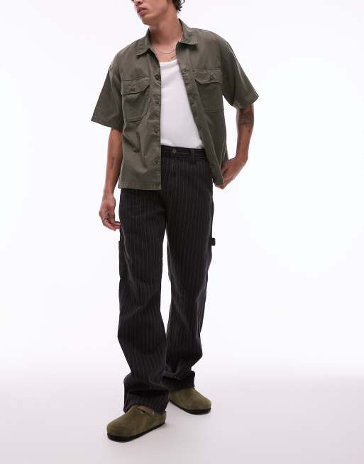 Dickies – Carpenter-Hose in Schwarz und Wollweiß mit Nadelstreifen