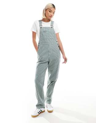 Dickies – Klassische Latzhose in Dunkelgrün mit Hickory-Streifen