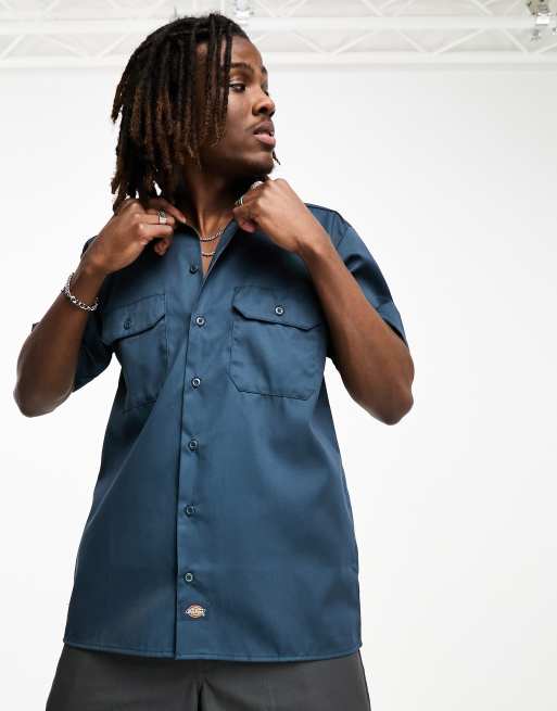 Dickies – Kurzärmliges Arbeitshemd in Marineblau