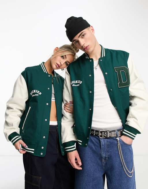 Dickies – Oak Grove – College-Jacke in Grün mit farblich abgesetzten Ärmeln, exklusiv bei ASOS