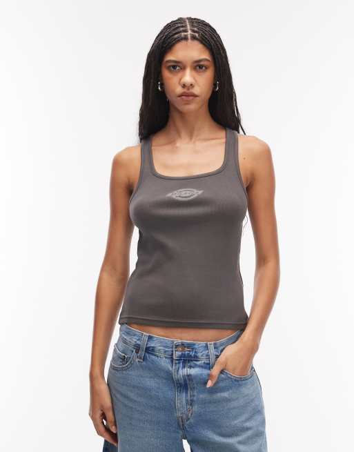 Dickies – Plainville – Trägertop in Schwarz mit eckigem Ausschnitt und Logo