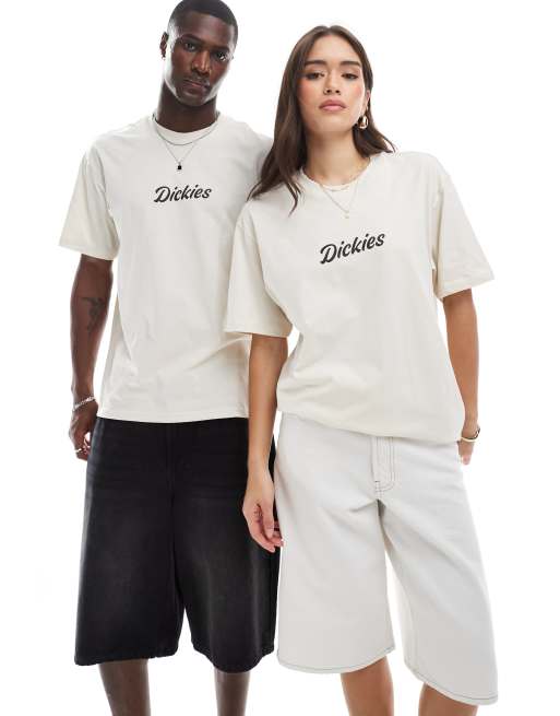 Dickies – T-Shirt in Wollweiß mit mittigem geschwungenem Logo-Schriftzug, exklusiv bei ASOS