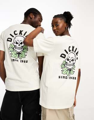 Dickies – Weyers Cave – T-Shirt in Wollweiß mit Totenkopf-Aufdruck hinten