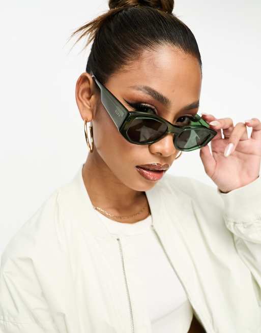 DIFF – Zoe – Eckige, geometrische Sonnenbrille in durchsichtigem Grün