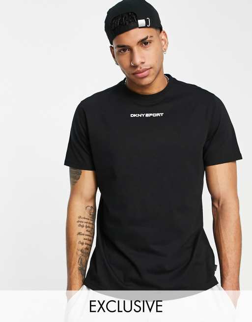 DKNY Sport – T-Shirt in Schwarz mit Gummi-Logo auf der Brust