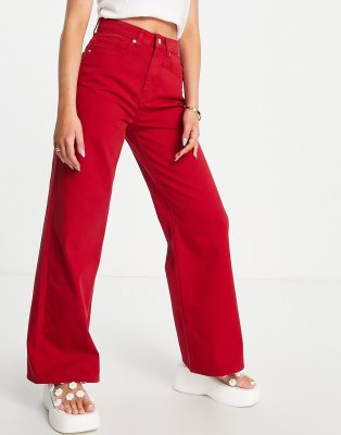 DTT – Jeans in Rot mit hohem Bund und weitem Bein