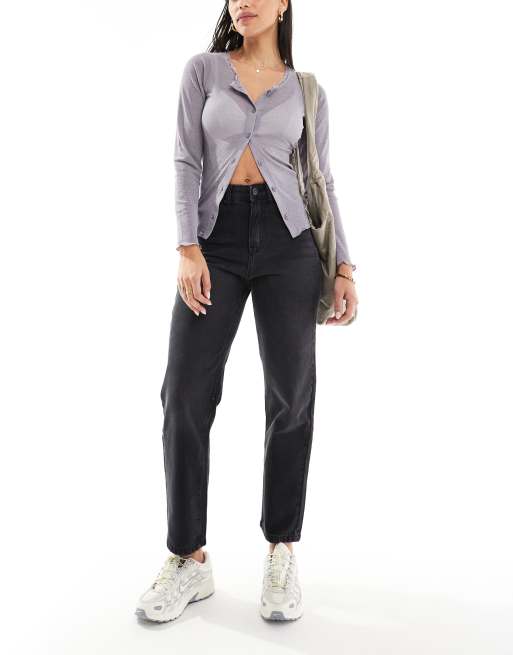 DTT – Katy – Verkürzte Straight Jeans in verwaschenem Schwarz mit hohem Bund