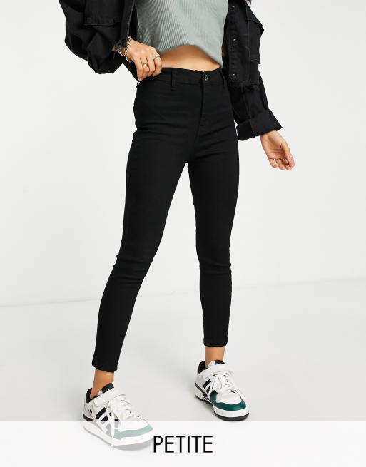 DTT Petite – Chloe – Eng geschnittene Disco-Jeans mit hohem Bund und Stretchanteil in Schwarz