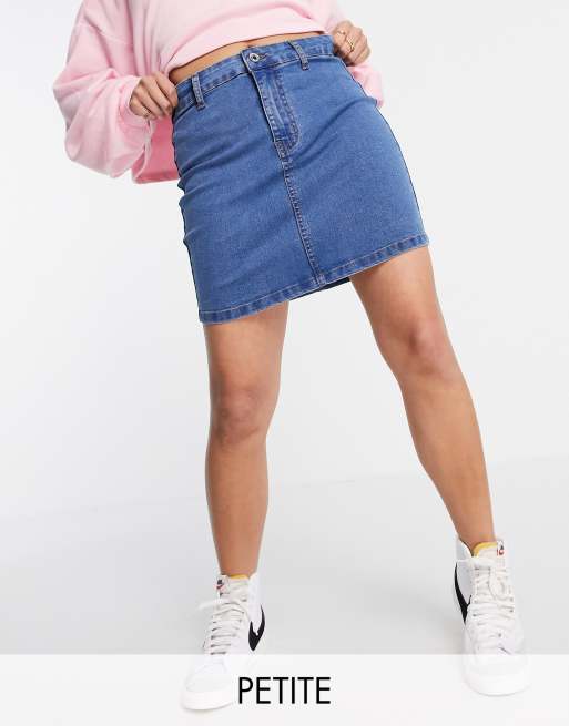 DTT Petite – Clara – Stretch-Jeansrock mit hohem Bund in Mittelblau