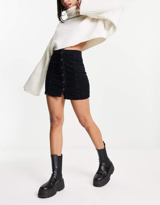 DTT Plus – Jordan – Cord-Minirock in Schwarz mit Knopfleiste