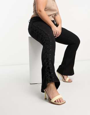 DTT Plus – Saskia – Skinny-Jeans in Schwarz mit niedrigem Bund und Schnürung