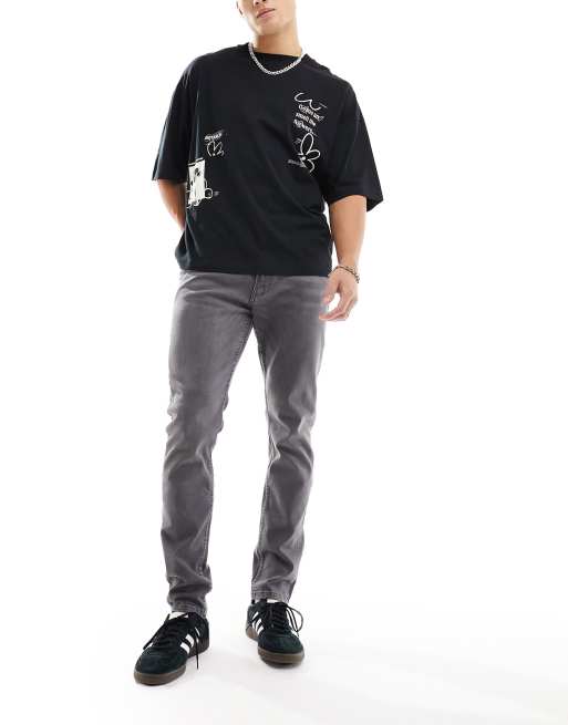 DTT – Schmal geschnittene Stretch-Jeans in Grau