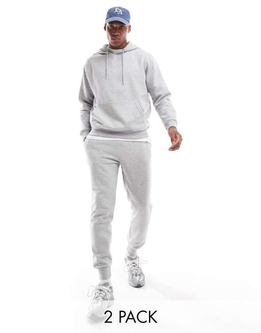 DTT – Trainingsanzug mit Kapuzenpullover und Jogginghose in meliertem Hellgrau
