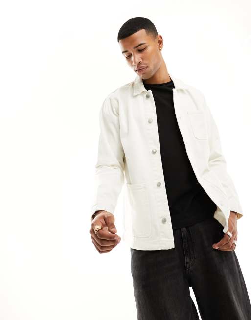 DTT – Worker-Hemdjacke aus Jeansstoff in Weiß
