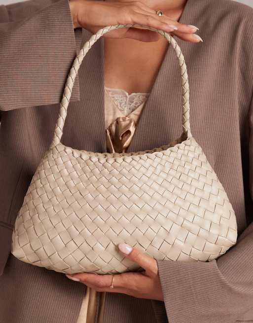 Dragon Diffusion – Rosanna – Geflochtene Schultertasche aus Leder in Wollweiß