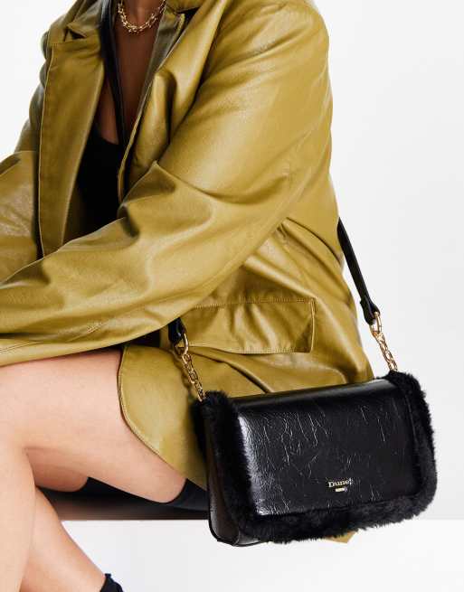 Dune – Umhängetasche in Schwarz mit Kunstfellbesatz