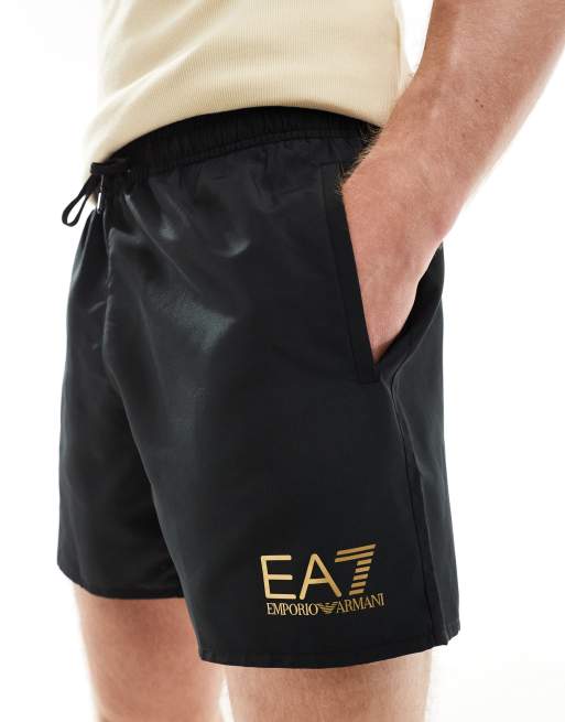 Armani – EA7 – Badeshorts in Schwarz mit goldenem Logo