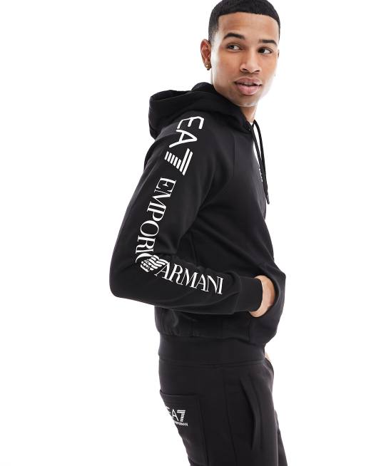 Armani – EA7 – Kapuzenpullover in Schwarz mit Logo am Arm, Kombiteil