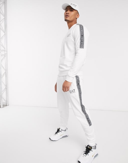 Armani – EA7 Logo Series – Weißer Trainingsanzug mit Logoband