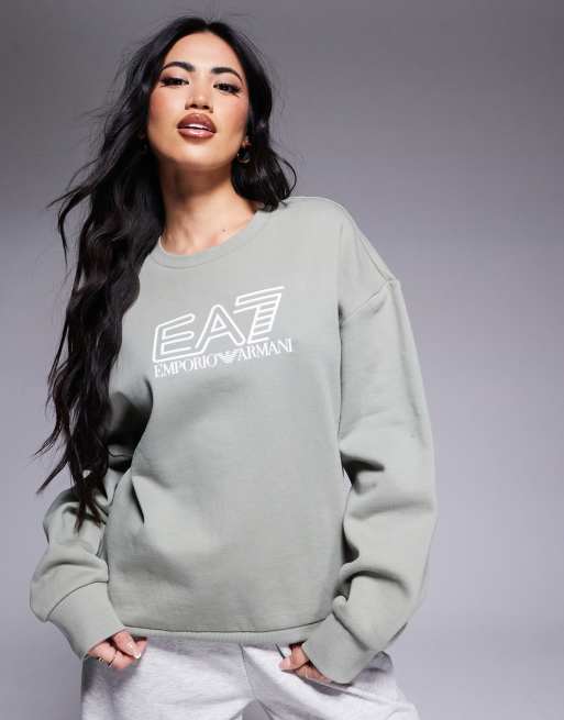 Armani – EA7 – Sweatshirt in Salbeigrün mit mittigem Logo