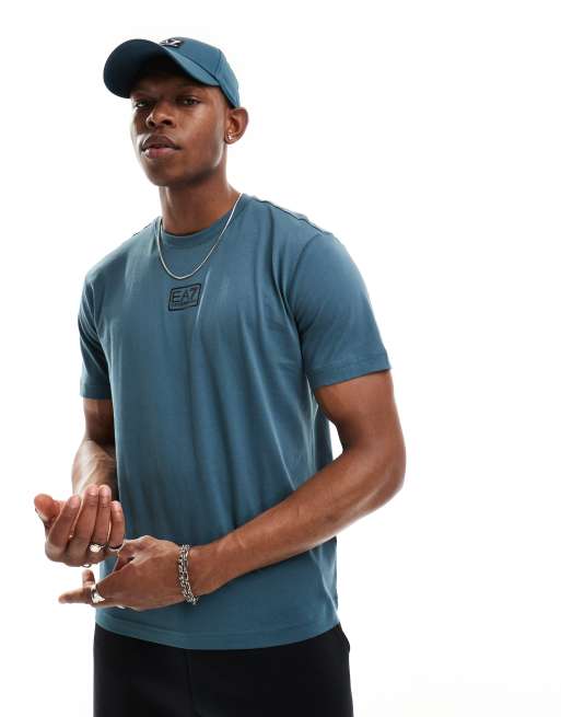 Armani – EA7 – T-Shirt in Mittelblau mit mittigem rechteckigem Logo