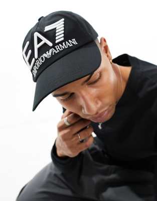 Emporio Armani – EA7 – Logo-Kappe in Schwarz