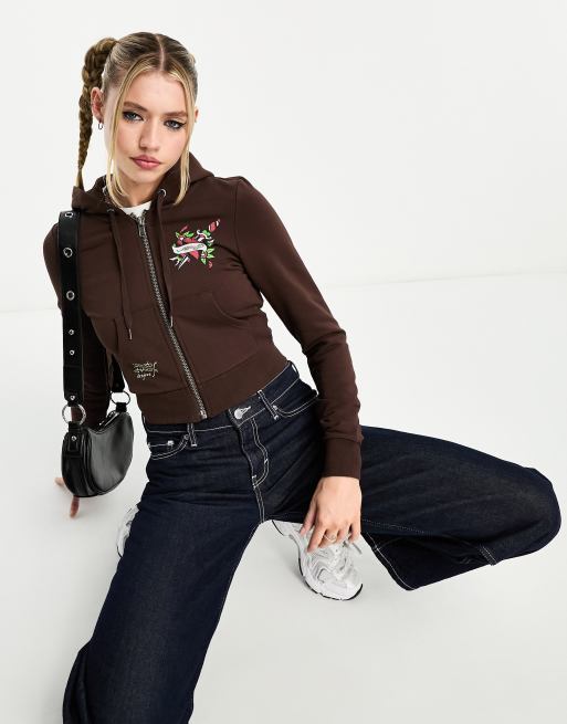 Ed Hardy – Kurz geschnittene Kapuzenjacke in Schokobraun, Kombiteil