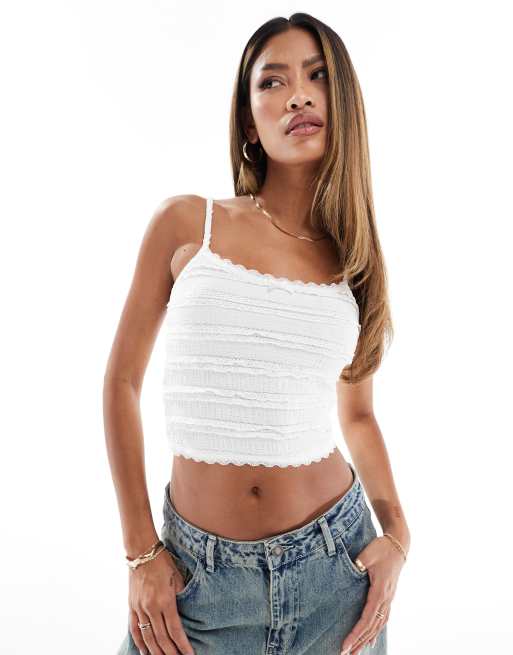 Edikted – Lucy – Gerüschtes Tanktop aus Spitze in Weiß