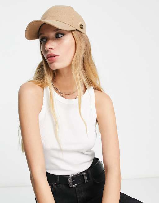 Elle – Melton-Baseballkappe aus Wolle in Kamelbraun