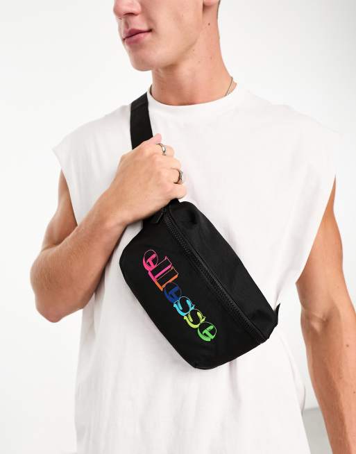 ellesse – Fulisi – Umhängetasche in Schwarz mit Logo in Regenbogenfarben