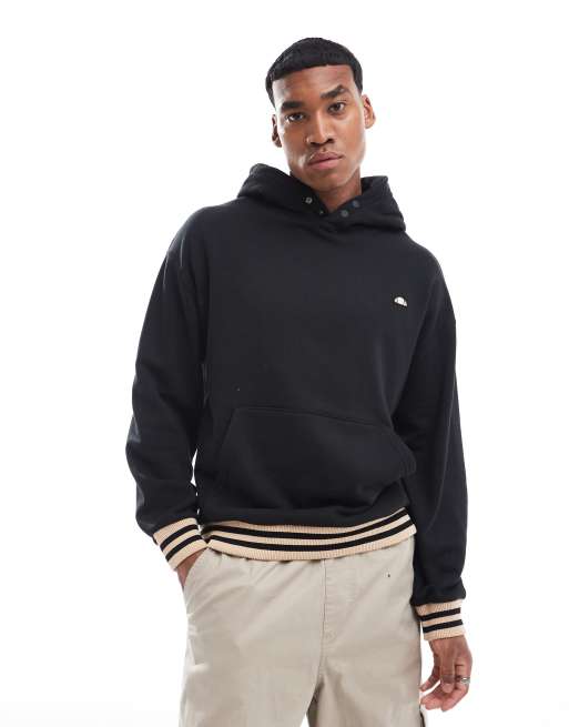 ellesse – Hazzo – Kapuzenpullover in Schwarz mit Zierstreifen