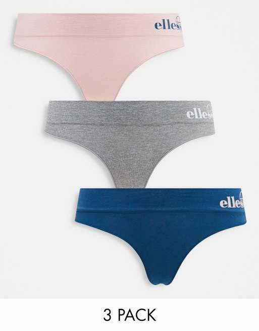 ellesse – Nahtlose Tangas in Marineblau, Rosa und Grau im 3er-Pack