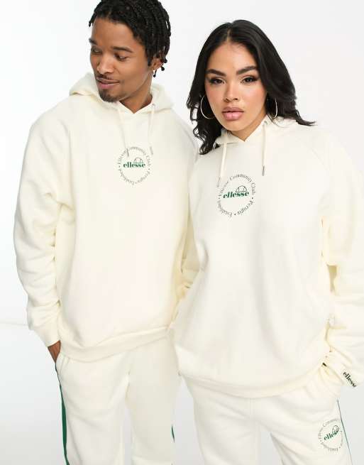 ellesse – Unisex-Kapuzenpullover in Wollweiß mit Oversize-Schnitt und „Community Club“-Print